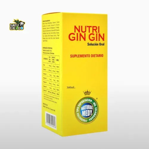 Nutri Gin Gin (Ginkgo biloba y Ginseng), Suplemento dietario que contienen ginkgo biloba y ginseng panax, al igual que una mezcla de vitaminas y minerales que suministran vitalidad y energía. Recomendado para personas con alta exigencia fisica.